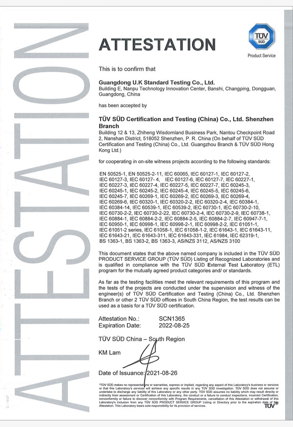 TUV南德目擊測(cè)試授權(quán)實(shí)驗(yàn)室